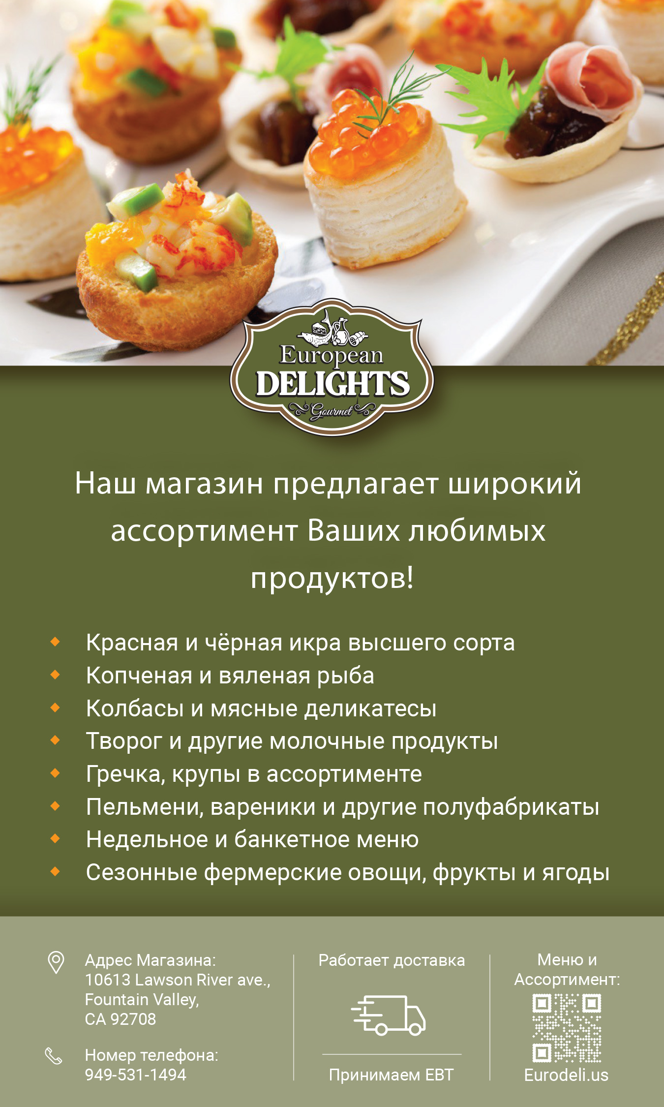 В нашем магазине «European Delights» можно купить продукты из стран СНГ и Восточной Европы, которые знакомы нашему вкусу, но нет на полках стандартных американских магазинов.